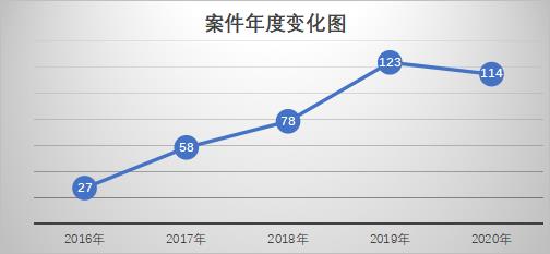 时间分布上看,2018年度33件、2019年度47件、2020半年度40件。